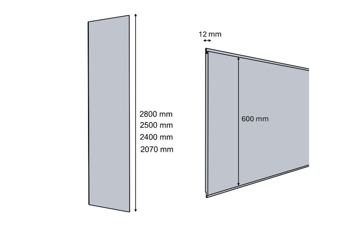 Panely sú vhodné najmä do modulárnych a montovaných domov, podkrovných priestorov, kancelárií , ale aj pri bežných rekonštrukciách , kde je dôležitá rýchlosť montáže a minimálne stavebné zásahy. Umožňujú dosiahnuť jednotnú plochu bez škár a vytvárajú vizuálne prepracovaný, moderný a nadčasový interiér. Výhody panelu: Elegantný a univerzálny dizajn – hodí sa do moderných aj klasických interiérov Rýchla montáž bez mokrých procesov Jednoduchá údržba a čistenie Odolný povrch so stabilnou farebnosťou Vhodný na steny aj stropy Technické info: Nástenný panel Rozmer (mm) Plocha panelu (m²) Váha panelu (kg) Váha m² (kg) 2800×600×12 1,68 13,27 7,9 2500×600×12 1,50 11,82 7,9 2400×600×12 1,44 11,38 7,9 2070×600×12 1,24 9,80 7,9 Použitie: interiéry rodinných domov a bytov modulové a montované stavby kancelárie a administratívne priestory rekreačné objekty a chaty komerčné a prezentačné priestory Parametre Veľkosť 2500mm , 2400mm , 2070mm , 2800mm